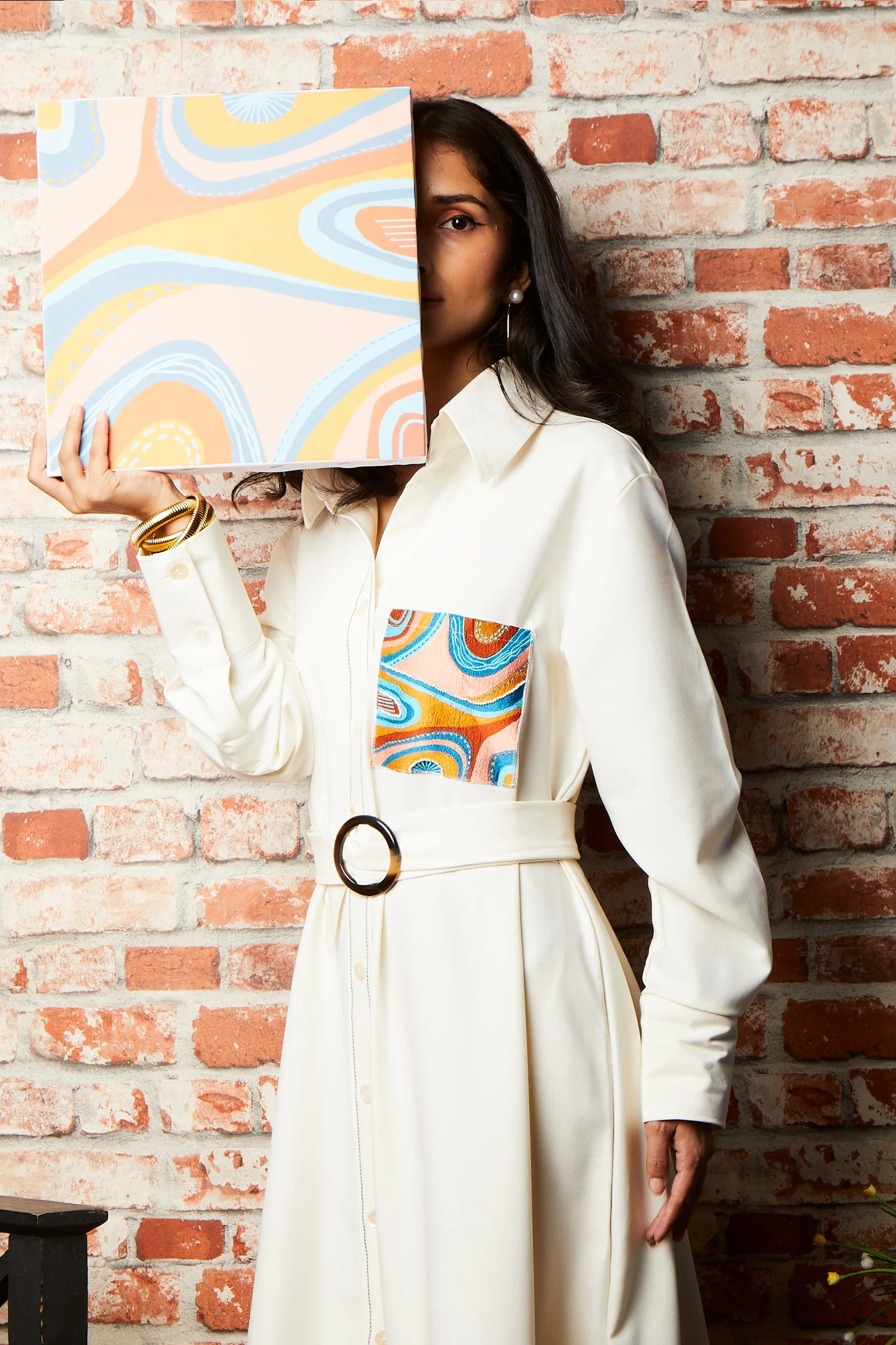 Indulge in sustainable fashion with the Moonrise Trench Dress. Made from premium twill cotton, this beige dress features an embroidered patch pocket and full sleeves, blending ethical artistry with refined elegance. Perfect for a chic brunch date.