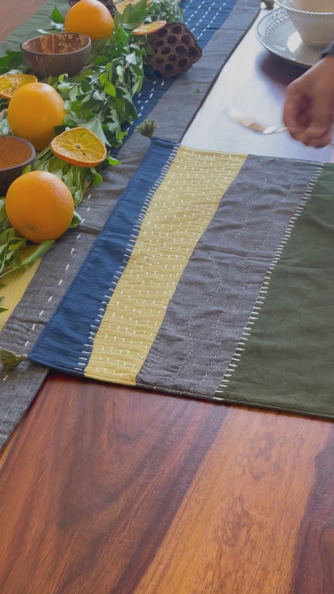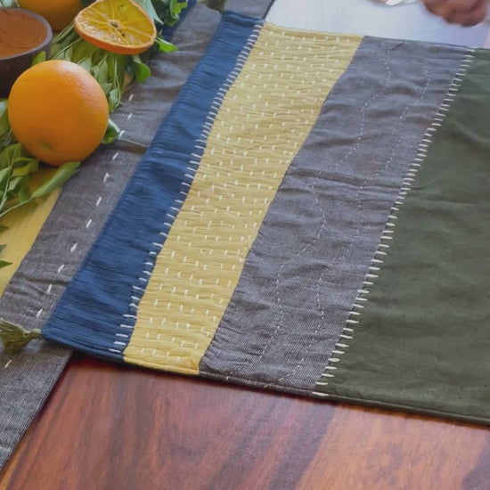 Olive Waves Table Linen Set (Set of 1 Table Runner and 4 Mats)